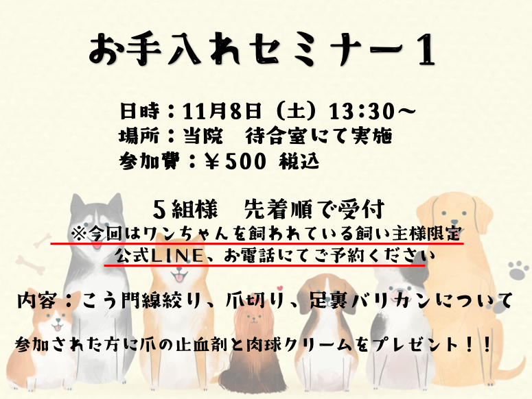 🐩お手入れセミナー① 肛門腺絞り、爪切り、足裏バリカンについて