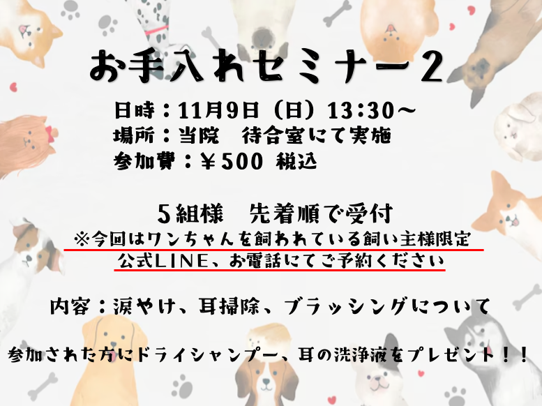🐕お手入れセミナー② 涙やけ、耳掃除、ブラッシングについて