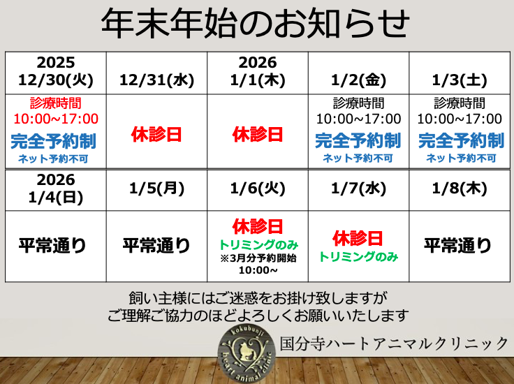 12月29日(月)まで平常通りの診療です🩺